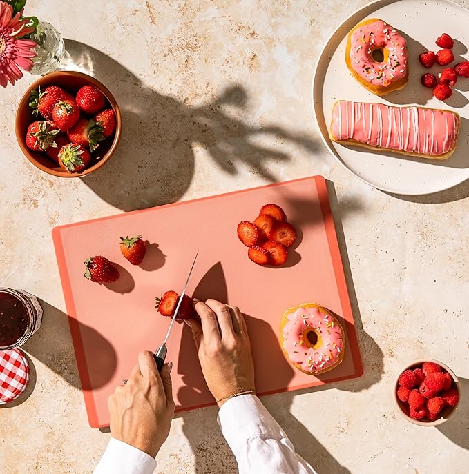 SMIRLY Plastic Cutting Board Set 3 Pieces, Non-Slip Dishwasher Safe Chopping Boards for Kitchen, Pink
