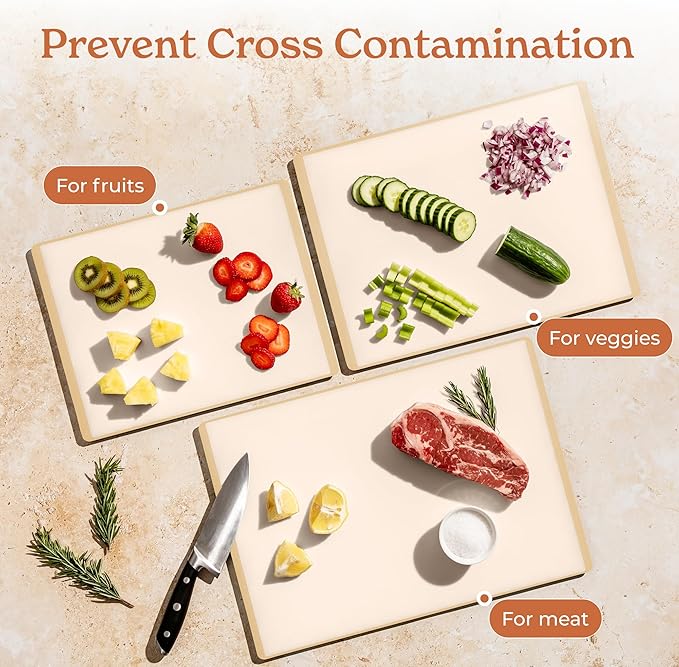 SMIRLY Plastic Cutting Board Set 3 Pieces, Non-Slip Dishwasher Safe Chopping Boards for Kitchen, Cream White