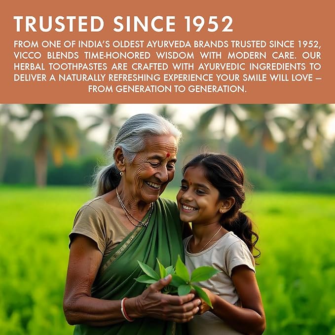 - From a 70-Year-Old Ayurveda Brand – Vicco brings generations of trust with its time-tested herbal blend for oral hygiene, supporting healthy teeth and gums since 1952.
