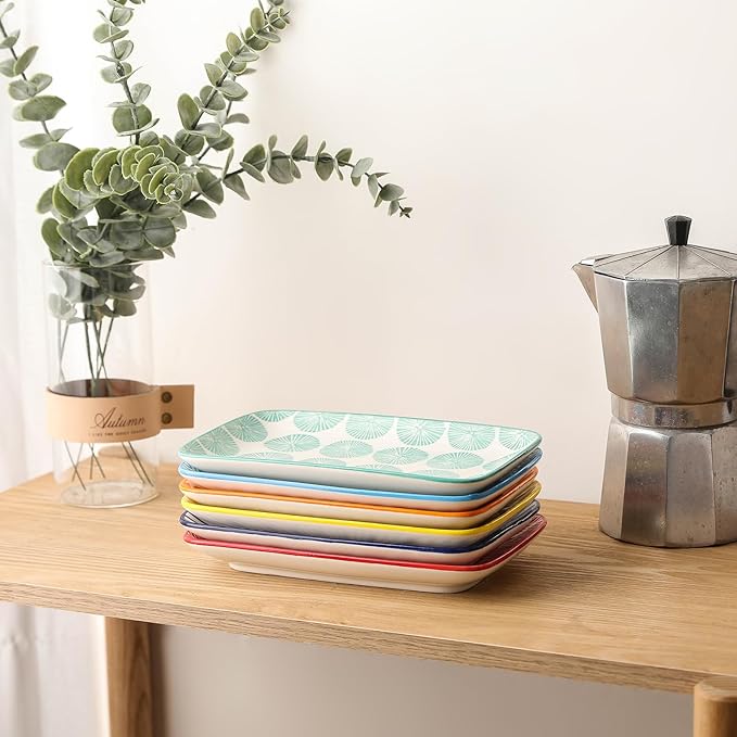 Selamica Ceramic Rectangular Salad Plates Set, Dinner Plate 9.4 Inch Dessert Plates for Party Entertaining, Small Serving Plates for Appetizers, Sushi, Fruit, Set of 4, Assorted Colors