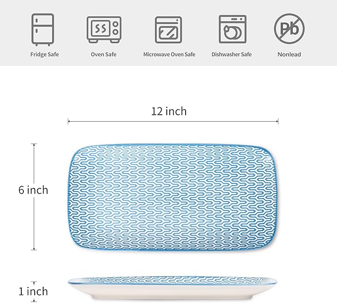 - STURDY & EASY CLEANUP - Fired at a high temperature with a good thickness to ensure their sturdiness and has no harmful Lead & Cadmium that make them healthier. The smooth surface protects its vibrant color forever and allows the large platter to be cleaned effortlessly. Safely used in the Microwave, Oven, Fridge, and Dishwasher.