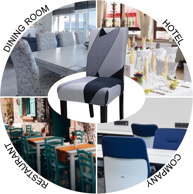 - 【High Quality of Chair Cover】- JQinHome dining room chair covers are made of durable and high persistence polyester and stretchy spandex fabric, soft, comfortable and wrinkle resistant, no ironing required; Stretchable Material,stretch that recovers quickly,secure fit with sewn-in elastic hem.