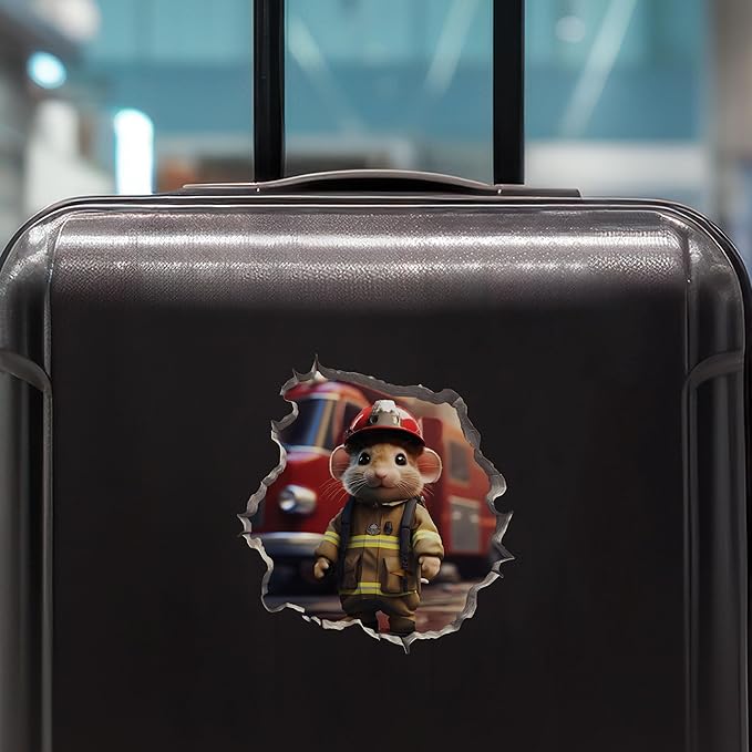 Firefighter Mouse in Mouse Hole Decal - Mouse Hole 3D Wall Sticker