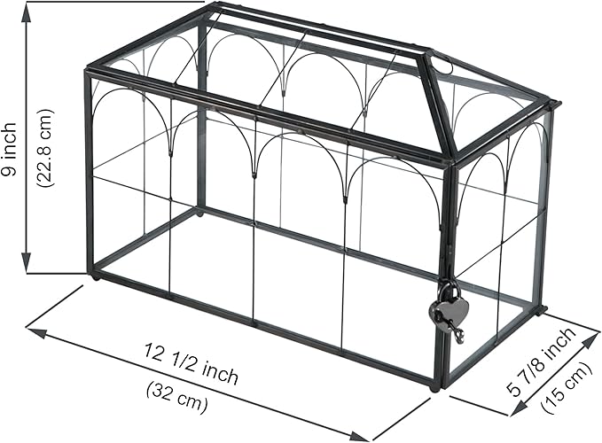 - Enhance your wedding reception with our exquisite wedding card box. Measuring 12.5 x 6 x 9 inches, it boasts a heart-shaped lock and 2 keys. This versatile box also serves as a charming flower girl basket, adding a decorative touch to your special day. Delight your guests with its elegant glass design, creating lasting memories for occasions like Valentine's Day, Christmas, Thanksgiving, and more.
