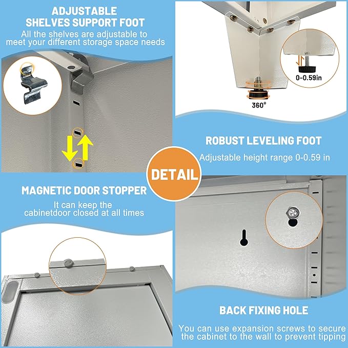 - SECURITY PRACTICAL DESIGN: Storage cabinet with doors is equipped with 3 adjustable shelves to meet your different needs. 2 pre-holes on the back of food pantry cabinet, help cabinets be mounted to the wall, prevent tipping.