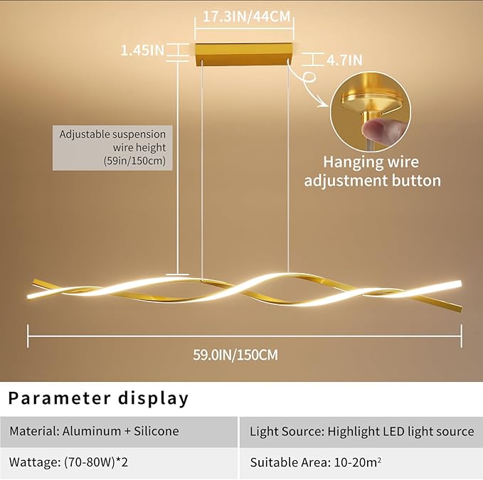 - Multiple Shapes :This linear dining light has 2 adjustable wires, simply press the black button connecting the wires to the shade to adjust the height, perfectly adapting to the height of the ceiling to meet your various needs.
