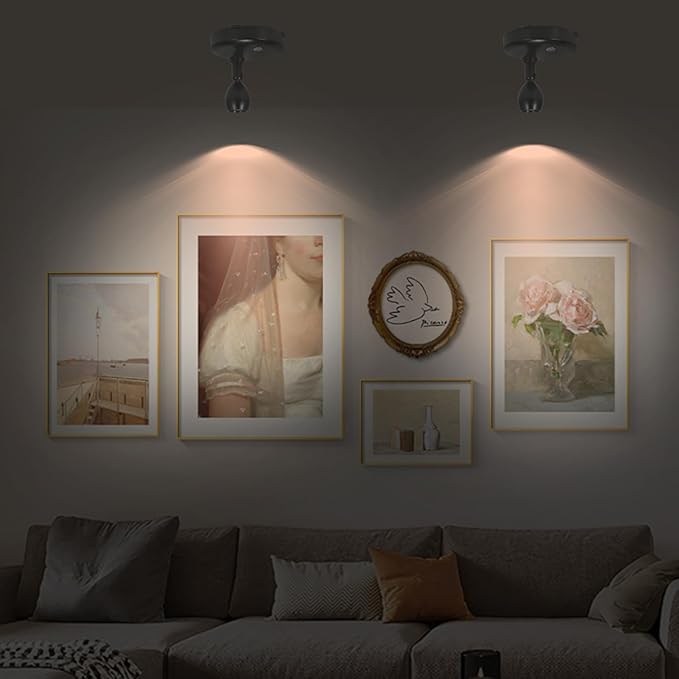 - [Easy Installation & Multi Purpose] - The small puck light is easy to mount with provided double sided tapes or screws, can stick on anywhere to highlight your closet, bookcase, decorations, arts, paintings, pictures, sculpture, wall photos, artwork, statue, model, dartboard, potted plants, trees, etc.