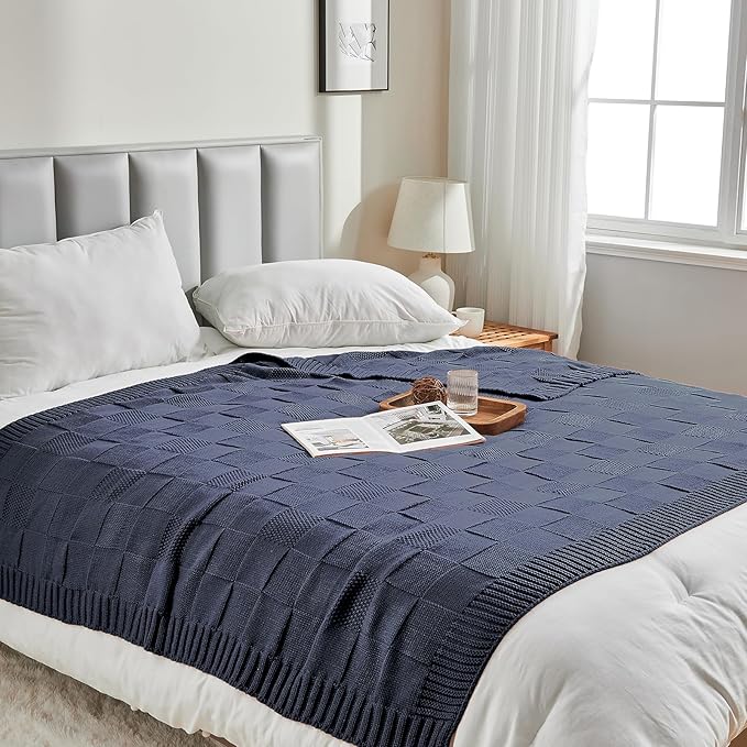- DESIGN & STYLISH:The checkerboard pattern integrated with seed-stitch knit looks more classic and cute.This unique design gives the throw blanket a homespun look that's relaxed and inviting.This knit design is equally soft and chic, keeping you warm in style. It will look amazing draped over any couch or over the end of a bed to provide that sumptuous cozy look
