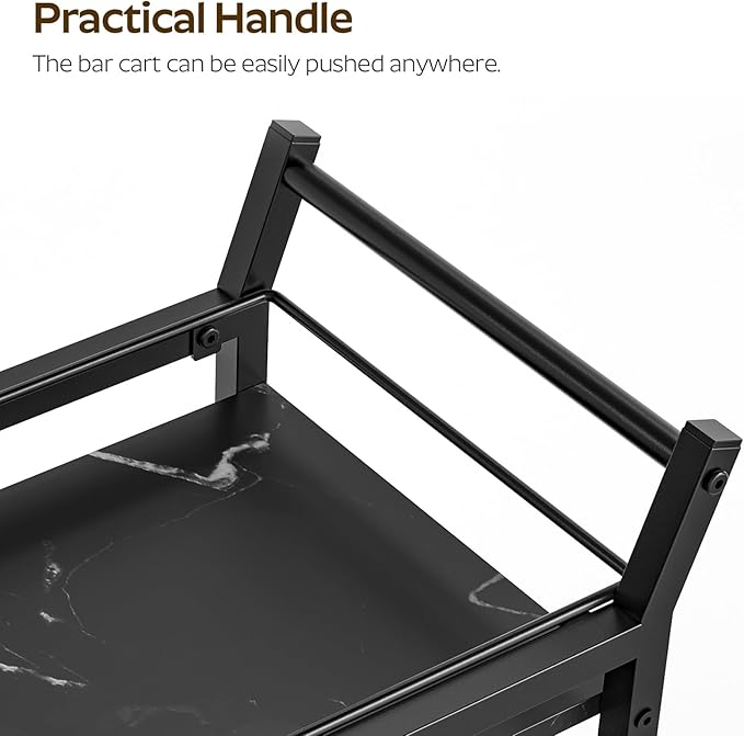 Bar Cart, Bar Cart for The Home, Small Bar Cart on Wheels, Beverage Cart, Home Bar Serving Cart with Glass Holder, Drink Cart for Bar, Kitchen, Dining, Marble Black and Black BC03BM