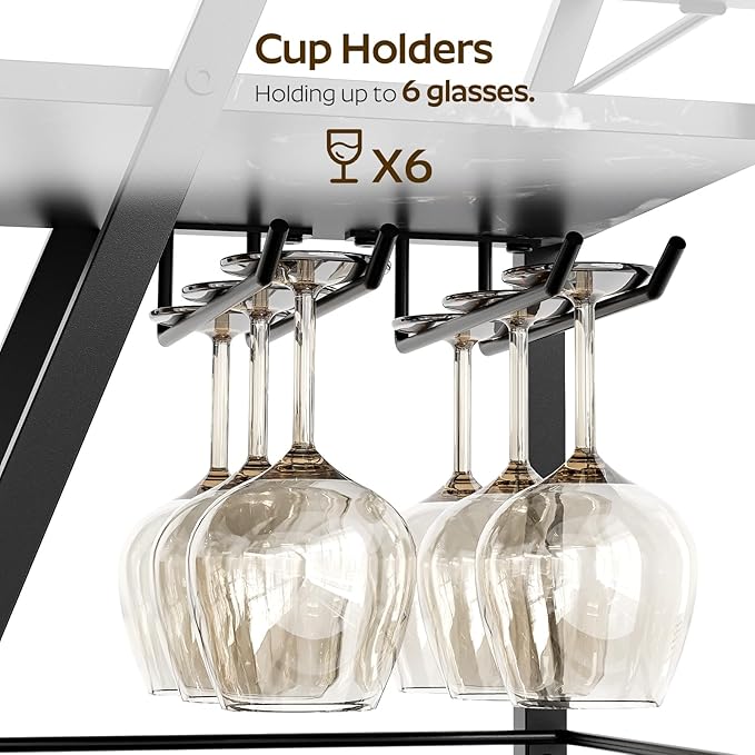 - Cup Holders Included: This bar cart has 2 quality metal cup holders for storing 6 goblets, ensuring stability while the cart is in motion. Whether you're preparing drinks or moving the cart during a gathering, you can use it with confidence
