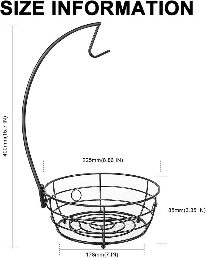 - THICKEN IRON BASE: Heavy weighted design of base is stable to protect fruit basket from falling when take out bananas, which is well-balanced.