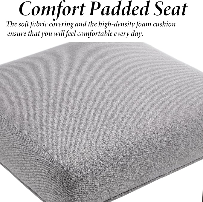Kmax Farmhouse Dining Chairs Set of 4, Rustic Kitchen Chairs with Linen Fabric Seat and Woven Back, Vintage Accent Chairs for Dining Room, Living Room, Grey