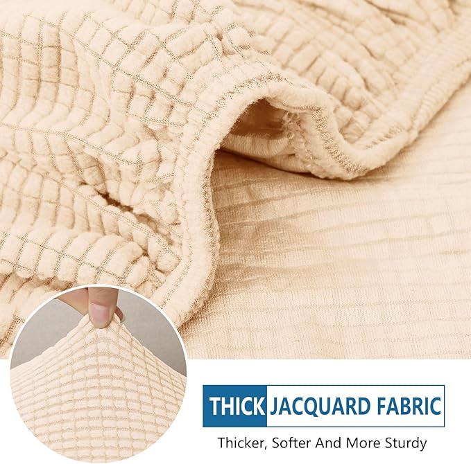 hyha Waterproof Couch Cushion Covers for Pets, Non Slip Sofa Seat Cover for Dogs Washable, Soft Thick Stretch Jacquard Fabric, Sofa Slipcovers with Elastic Bottom (1 Piece for Large, Beige)
