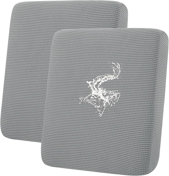 hyha Waterproof Couch Cushion Covers for Pets, Non Slip Sofa Seat Cover for Dogs Washable, Soft Thick Stretch Jacquard Fabric, Sofa Slipcovers with Elastic Bottom (2 Pieces, Light Grey)