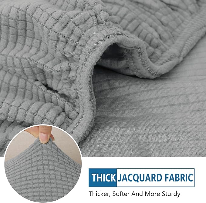 hyha Waterproof Couch Cushion Covers, Sectional Sofa Cushion Slipcovers L Shape, Thick Stretch Jacquard Fabric, Washable Chaise Lounge Cover with Elastic Bottom (1 Piece for Chaise, Light Grey)