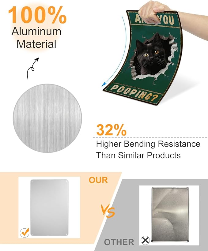 - 【Durable and Weather-Resistant】The toilet signs for bathroom are made from 100% rust-free strong aluminum, This black cat decor vintage metal sign comes in bright, eye-catching colors that won't fade over time.