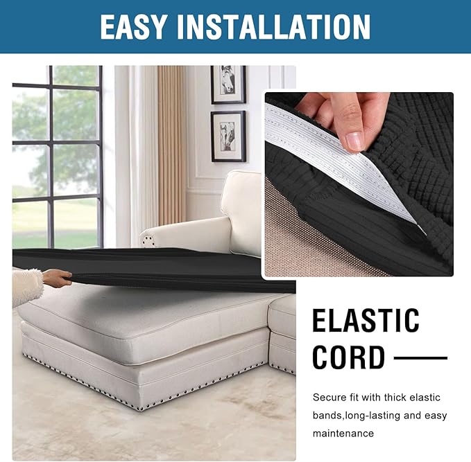 - NON SLIP: Effortless for installation (guide photos on selling page), sewn with thick elastic loops to cover the bottom edges. It is easy to install and take off, making your home more harmony, high recommended for both leather and cloth furniture