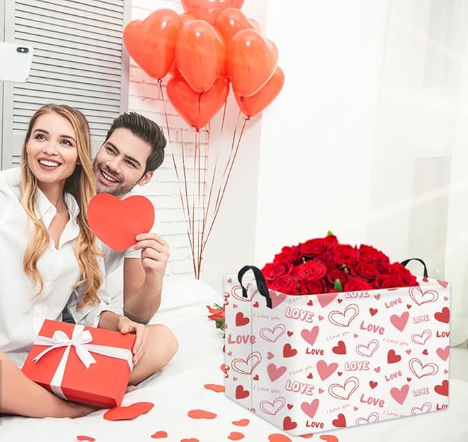 HIYAGON Rectangular Valentines Gift Basket - Pink Love Room Decor