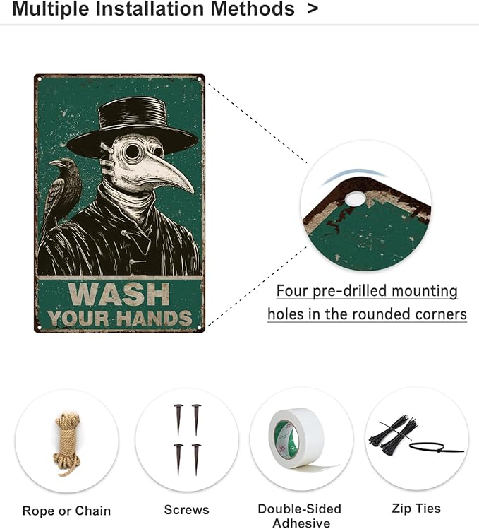 - 【Ideal Gift】This unique and cute Plague Doctor Metal Sign is the perfect gift for halloween and gothic lovers.