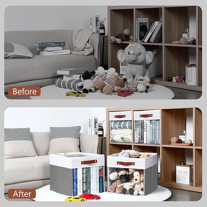 - 【Clear Cube Storage Bins】We have made an upgrade to the cube storage organizer bins by incorporating a clear window design. This feature enables you to easily and precisely view the fabric cubes for cube organizer stored inside. There will be no need to dig through the contents anymore.This will improve the efficiency of your search, which in turn will help you save valuable time and effort.