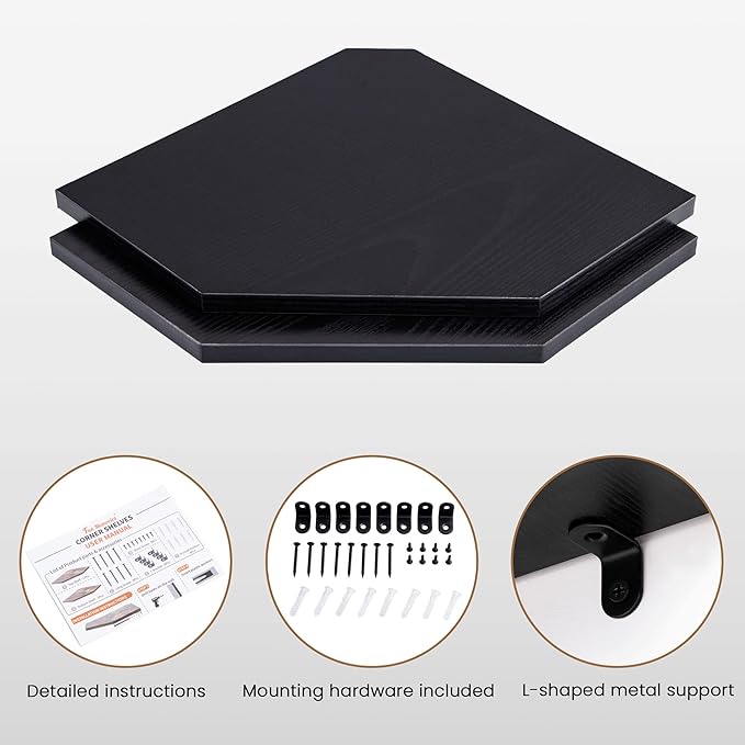 - 【Easy to Mount】The package comes with user-friendly instructions and all the necessary mounting hardware. Just place the corner wall shelf level in your desired location and secure it in place using the hidden bracket connectors provided, followed by screws