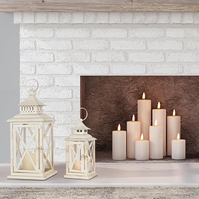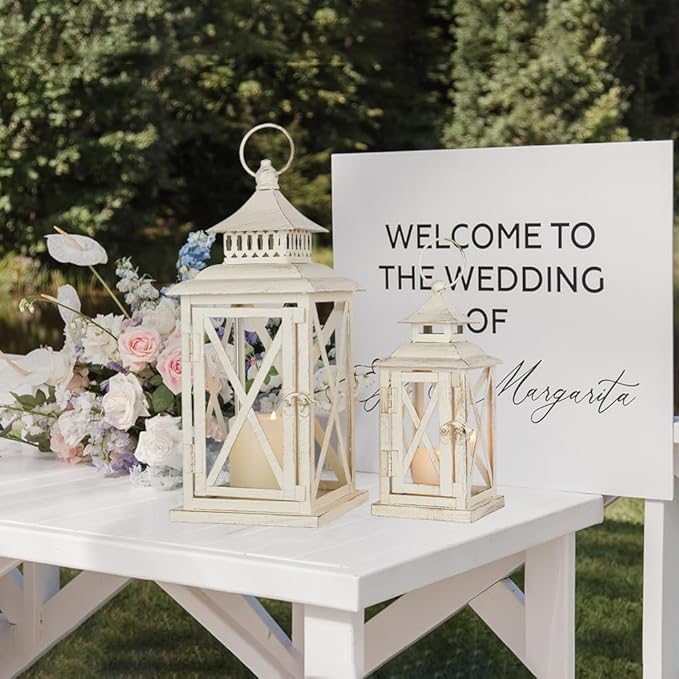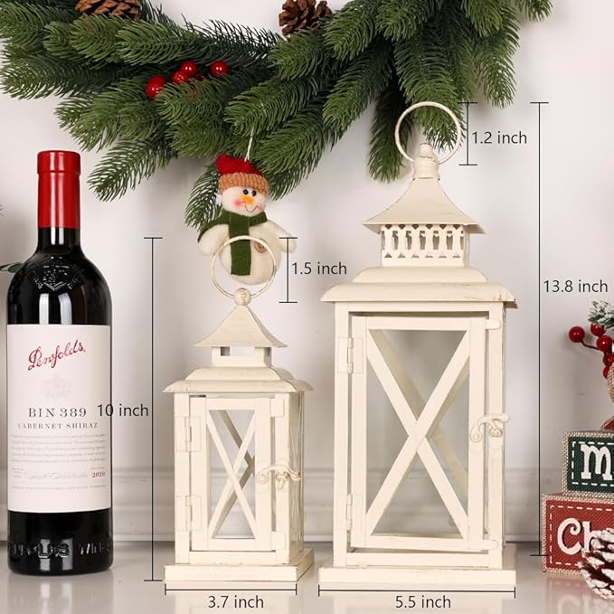 - 【Beautiful Vintage Lantern Decor】Enhance your home decor in a unique way with the cute lanterns by NEEDOMO! The simple and elegant finish with the classy metal and visible glass in a stylish distressed white look make them the perfect addition to your vintage decor in your front porch, garden, hallway!