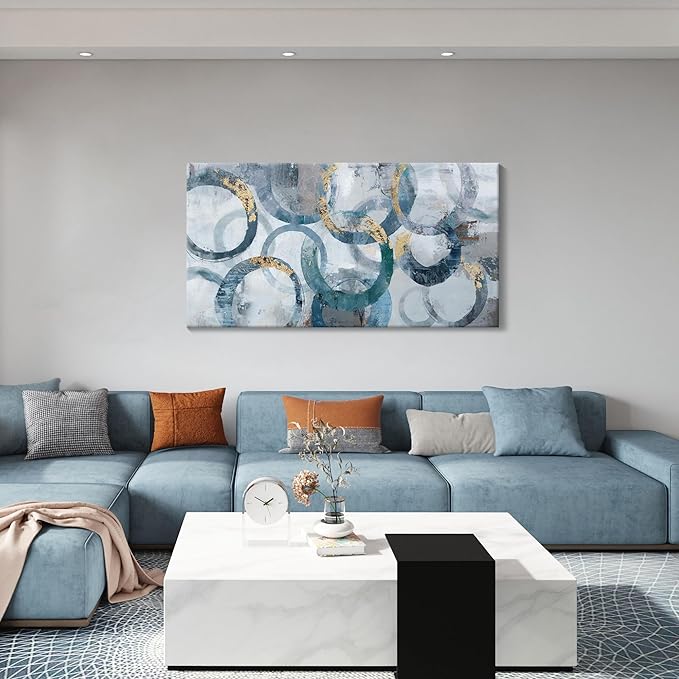 - wall pictures for living room: Experience the artistic elegance of our paintings adorned with intricate circles and delicate gold leaf accents, adding a touch of opulence to your decor.