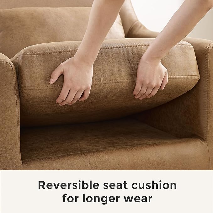Extra Deep Accent Chair, Comfy Fabric Armchair with Wood Base, Upholstered Single Sofa Chair for Living Room & Bedroom, Faux Leather Brown