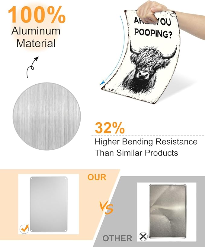 ALKB Funny Highland Cow Are You Pooping Metal Signs Vintage Farmhouse Bathroom Wall Decor Highland Cow Lovers Gift 8 x 12 Inch