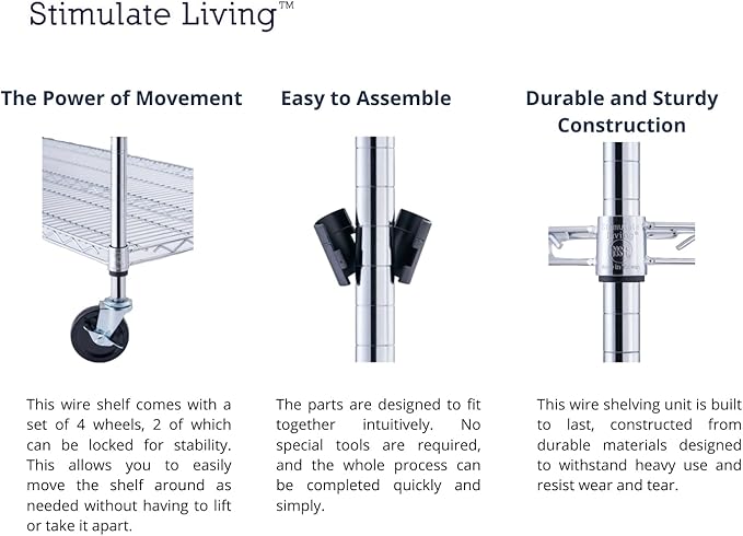 - ★COMMERCIAL-GRADE QUALITY AND NSF CERTIFIED★ Our Stimulate Living Wire Shelving units are constructed with premium-grade materials, ensuring that they can withstand the rigorous demands of commercial use while also being suitable for residential use. They are NSF / ANSI Standard 2 compliant, ensuring that they meet the highest standards of quality and safety for use in commercial and residential settings.