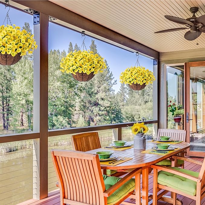 - Durable and UV Weather-Resistant: The looking real fake hanging plants are made of high quality silk cloth and plastic, which are designed to withstand outdoor elements, and UV and all weather resistant, so they won't fade or deteriorate in the sunshine.