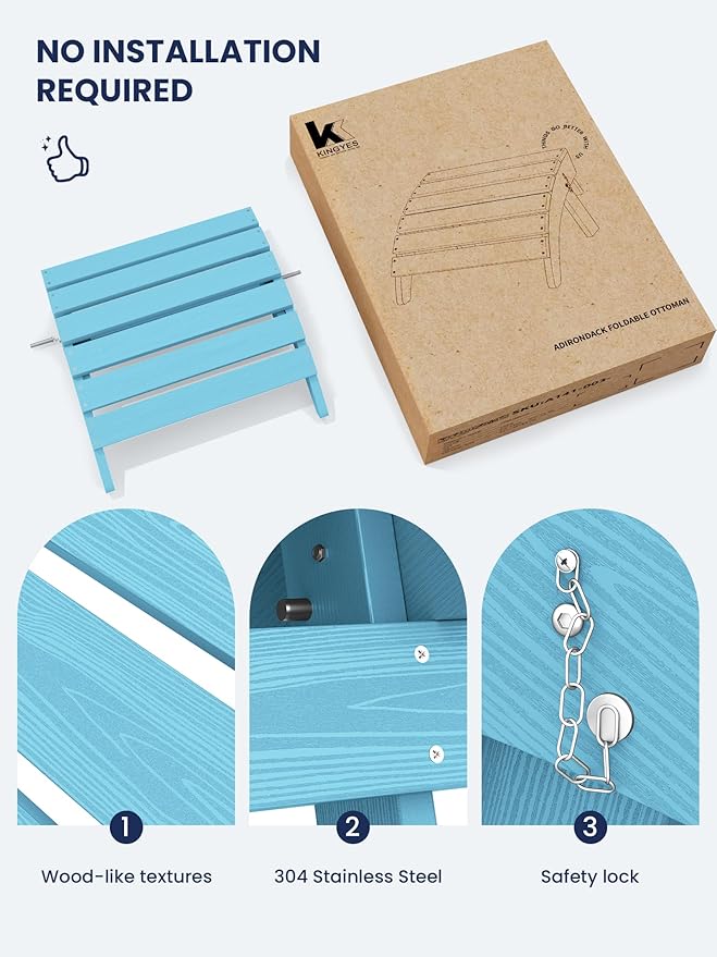 - [Instant Comfort]: No assembly required for the KINGYES Adirondack Footstool. Unbox and enjoy immediate relaxation with this portable and convenient footrest, designed for seamless integration into your outdoor living space.
