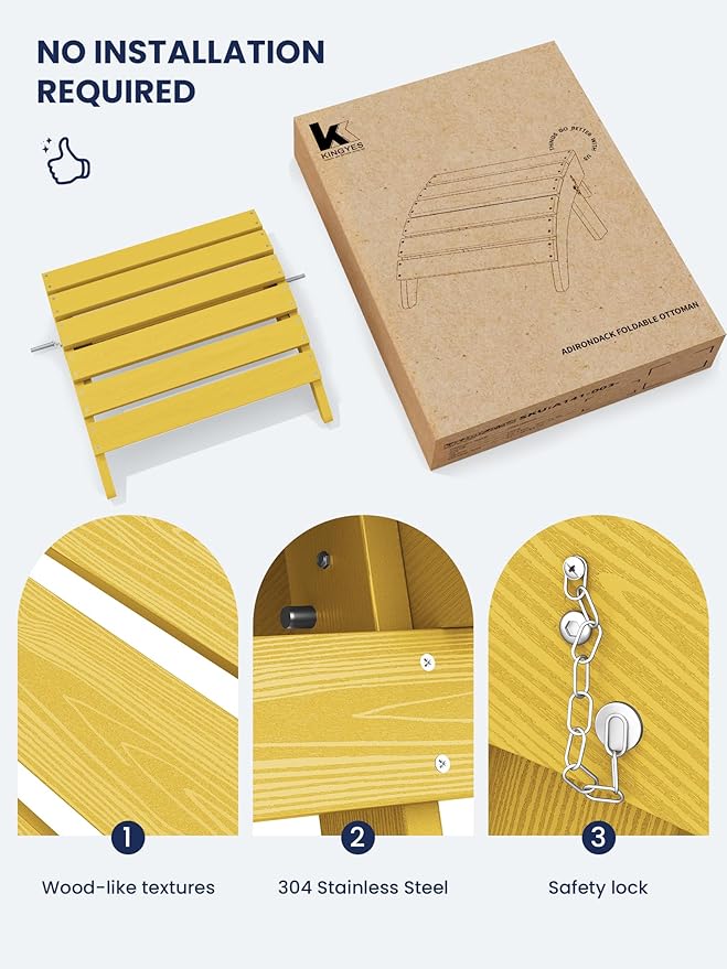 - [Instant Comfort]: No assembly required for the KINGYES Adirondack Footstool. Unbox and enjoy immediate relaxation with this portable and convenient footrest, designed for seamless integration into your outdoor living space.
