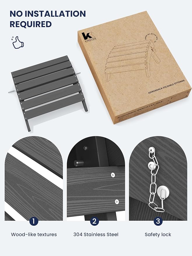 - [Instant Comfort]: No assembly required for the KINGYES Adirondack Footstool. Unbox and enjoy immediate relaxation with this portable and convenient footrest, designed for seamless integration into your outdoor living space.