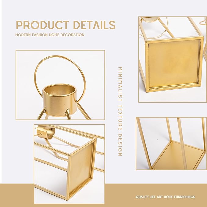 - 【Wide Application】:This modern farmhouse candle lantern is versatile. You can hang them on the wall , or place the candle lanterns on kitchen dinning table and coffee table as table decor. This cute decorative lantern is made of classic gold metal, and the metal finish enhances its modern charm. It shows a variety of styles and perfect modern farmhouse decor for the any room,such as living room decor, bedroom, bathroom, dining room, entrance passage,fireplace mantle decor, table decor and MORE!