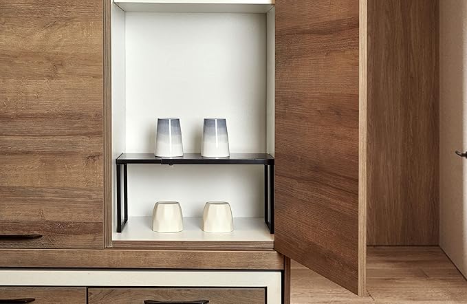 Nxconsu Cabinet Shelf Expandable Organizer Riser Rack for Kitchen Pantry Cupboard Under Sink Countertop Home Organization Extra Storage Space Saver Heavy Duty Metal Edgeless Design Black