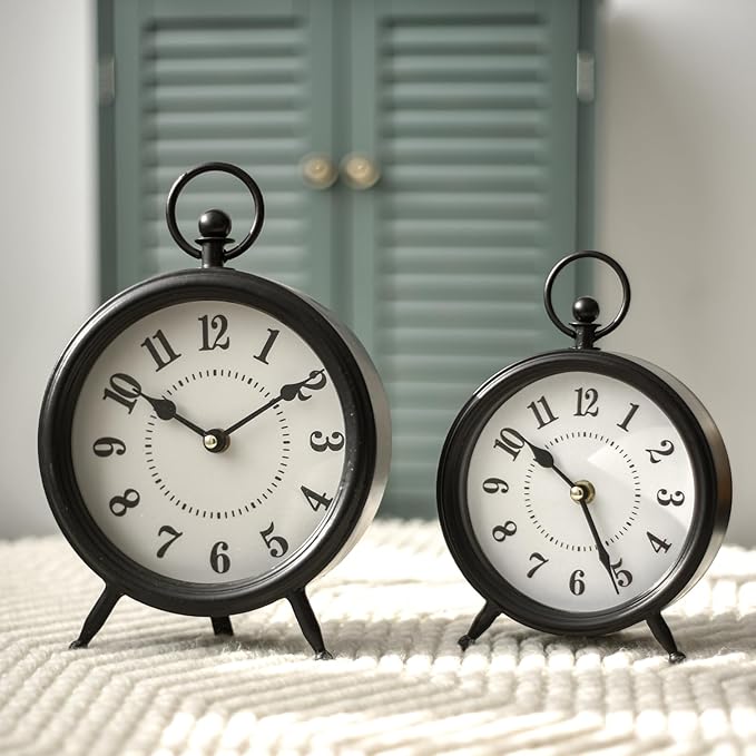 Vintage Black Table Clock on Stand, Decorative Desk and Shelf Clock,Decorative Battery Operated Table Top Clock for Living Room,Silent Non-Ticking(Small)