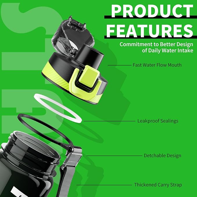 - Easily Open & Leakproof: Our leak proof water bottles flip cap is designed with a safety lock to completely avoid leaks. Our water bottle gives you more freedom and comfort. The wide mouth is easy to clean and add fruit or ice cubes! The drinking spout helps you drink easily and quickly without straw
