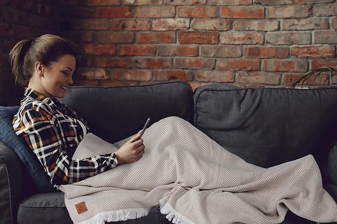 - CELEBRATE SUSTAINABLE STYLE: Made in Turkiye with recycled cotton, this cotton throw blanket brings eco-conscious comfort to your home; the soft weave and fringe detail give this woven blanket for bed a rustic, decorative touch that layers beautifully in any space