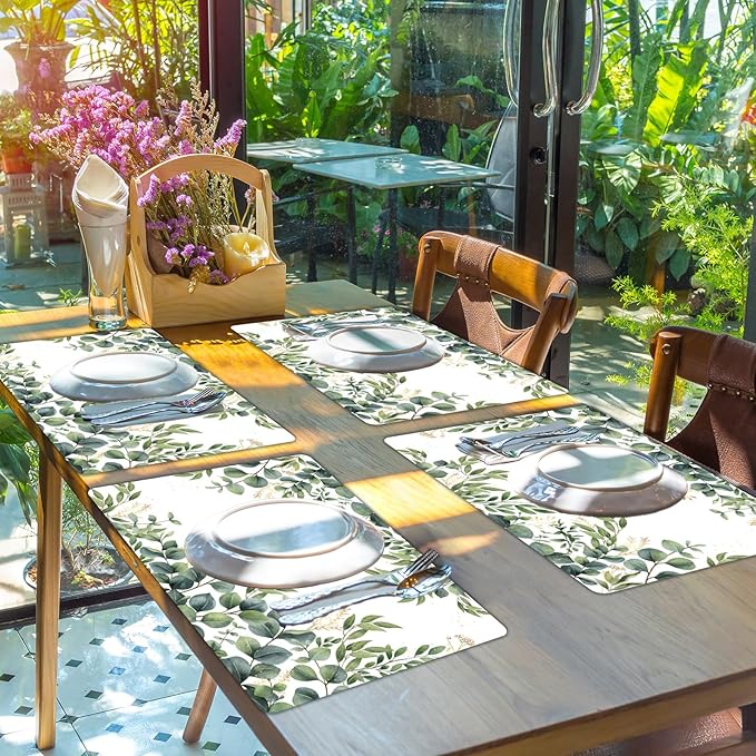 - Easy to clean:Our eucalyptus leaves plastic table mats are designed for easy cleaning to save your time. Just wipe these summer green leaves placemats with a damp cloth after the party.