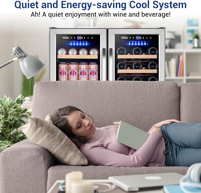 - 【Larger Capacity & Removable Shelves】Velieta wine refrigerator can hold up to 29 standard Bordeaux bottles and 110 standard 12oz/330ml cans drink. You can enjoy unlimited chilled drinks and wine at the right temperature. The wine cooler has removable shelves that help you pick and place conveniently.
