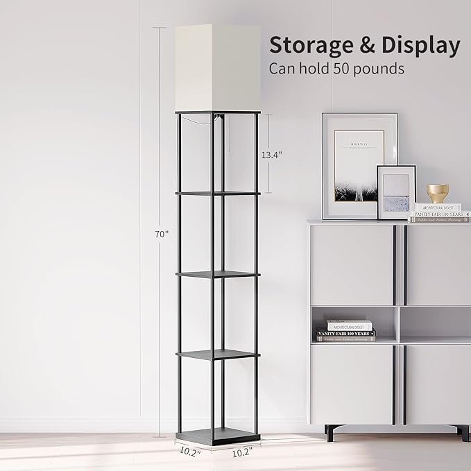 - Storage and Display: This tall lamp is made of high-density fiberboard that can support over 50 pounds, providing ample storage space and stability. Store books, decor, plants. Doubles as a corner lamp or nightstand with lamp. Ideal gift for holidays!
