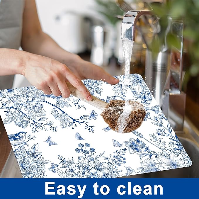 - Eye-catching design:The design of the summer placemats incorporates chinoiserie blue flowers and birds,which will create a elegant atmosphere for your summer theme party.