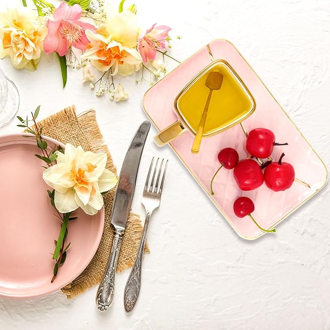 - Attractive and Elegant: the ceramic aesthetic coffee mug with saucer is characterized by handbag shapes and hand painted golden edges, and the color combination of pink and gold makes it more beautiful and graceful, which can bring both decorative and practical functions