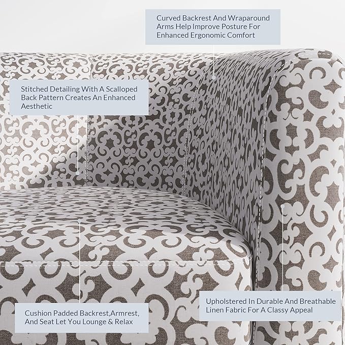 - [ERGONOMIC DESIGN] Our corner chair is designed with a curved backrest and wraparound arms, ensuring ergonomic seating with elevated comfort. Covered in breathable and durable linen, gives this accent chair an upscale look and feel.