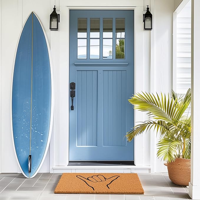 - Versatile - Our surf and skate inspired Shaka doormat outdoor entrances is not only perfect for beach houses, but also makes a great welcome mat for outdoor events or camping trips. Its durable construction is perfect for cleaning dirt and debris from shoes, and the all-weather coir fibers dry quickly. Use it to welcome guests to your home, cabin, or RV.