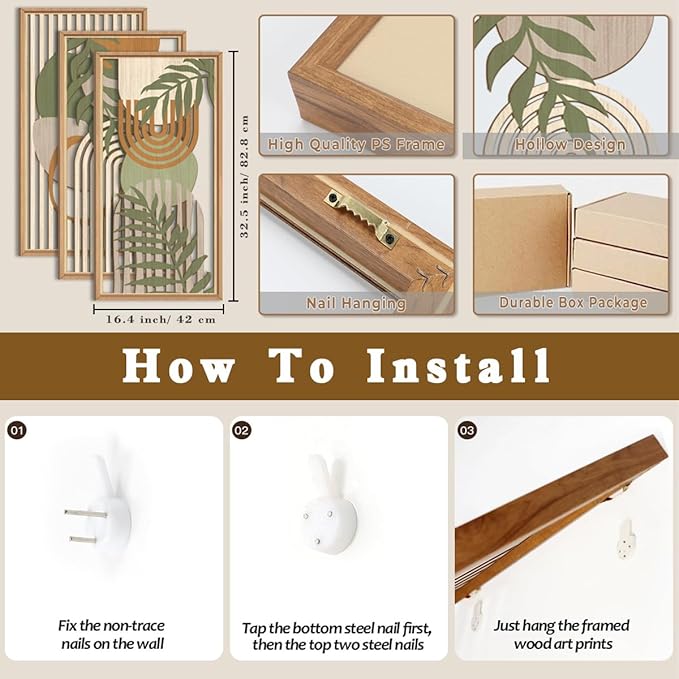 - 【Customer Service】We are committed to providing customers with high-quality products and services. If you have any questions about the mid-century modern wooden wall art decor for living room, boho wall decor for bedroom, please contact us. We will reply online 24 hours a day and solve your problems. Customer satisfaction is our top priority. Please note that actual colors may vary from online images due to monitor settings.