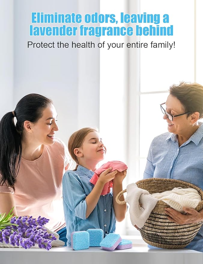 - [Lavender Fragrance washer cleaner] Aievrgad washing machine cleaner contains 12 tablets per pack. Each tablet is individually packaged and concentrated for easy storage, dosage adjustment and space saving. Add lavender fragrance, bring fresh and pleasant odor! The washing machine cleaner is safe and environmentally friendly with no harmful substances. Recommended to use once a month, if you have children or pets at home, you can moderately increase the frequency.