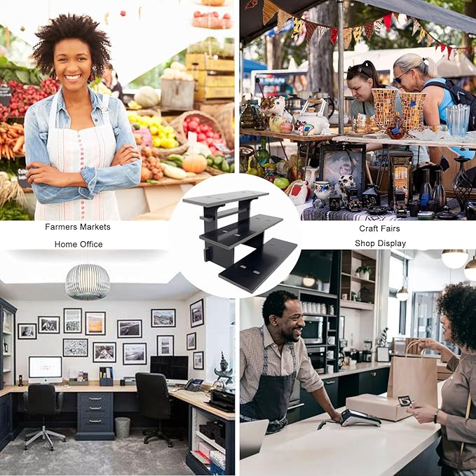 - EASY TO ASSEMBLE: Our portable display rack shelves are precision cut pieces specifically engineered to snap together. It installs quickly without any hardware or tools, and can be assembled/disassembled repeatedly, making it easy to take to farmers markets, craft shows, and trade shows. Our carefully crafted stands make products shine, this black risers display stands size: 11"L x 14.2"W x 9.5"H.