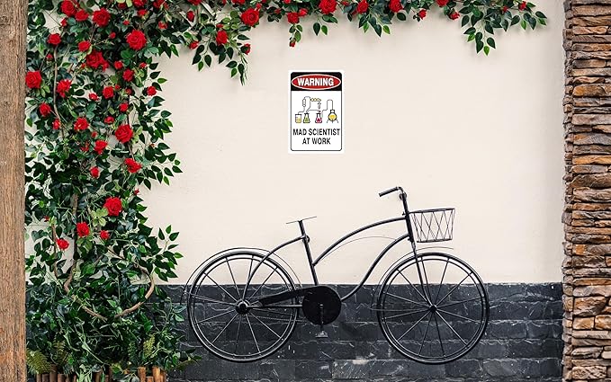 Vintage Tin Sign Retro Metal Funny Warning Mad Scientist At Work Signs for Home Decor Stylish Wall Art Plaques Gift for Bathroom Kitchen and Gothic Wall Decor in Every Room 12x8 in